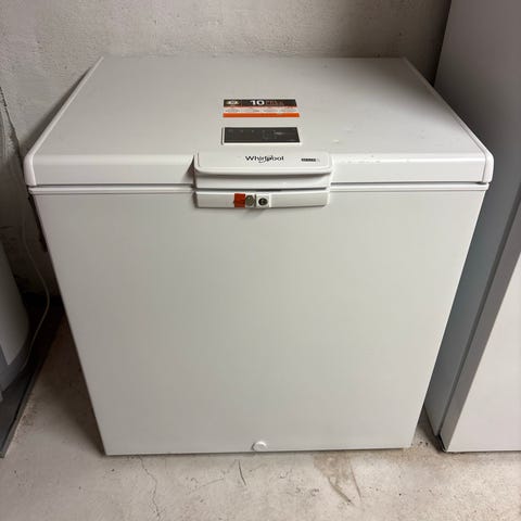Whirlpool fryseboks i hvit utførelse. Fryseboksen har toppåpning og er egnet for oppbevaring av frossen mat i bod, kjeller, garasje eller kjøkken. En enkel og funksjonell modell med oversiktlig innvendig plass. Passer for husholdninger som trenger ekstra frysekapasitet utover det som finnes i kombiskap eller mindre frysere.
