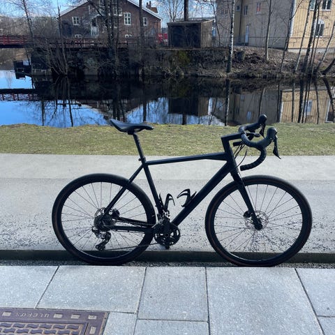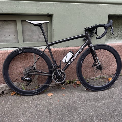 Satt opp med rå-lette lightbicycle 50mm hjul med extralite nav på ca 1100g. 30mm Gp5000 tubeless. Ellers 34mm styre med evne 110mm stem (begge kan byttes), Sram Red wattkrank 172.5 og drev, samt kassett og Sram force girsystem, bremser og hendler. Ellers Sram red kjede, darimo pinne og mcfk karbonsete og Ax-lightness flaskeholdere.