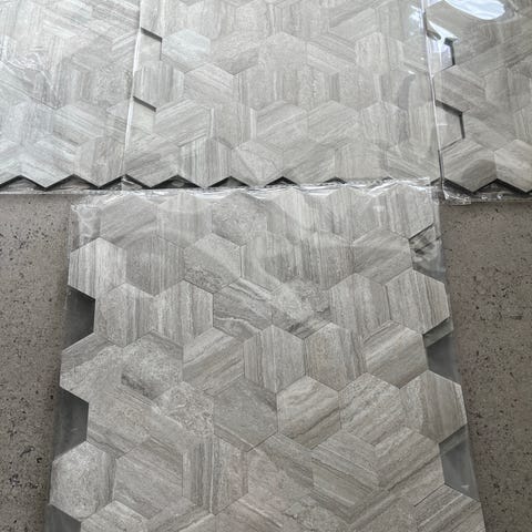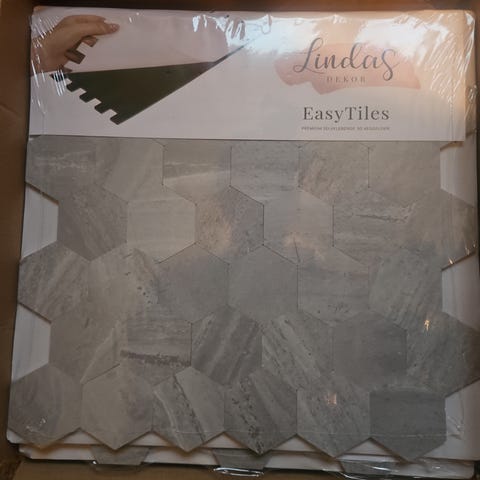 Hexagon hvit matt selvklebende veggfliser. Uåpnet, 4 stk (se bilde).