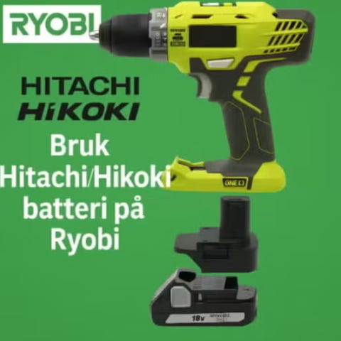 Makita 18V batteri på Ryobi verktøy – praktisk adapter. GRATIS FRAKT!