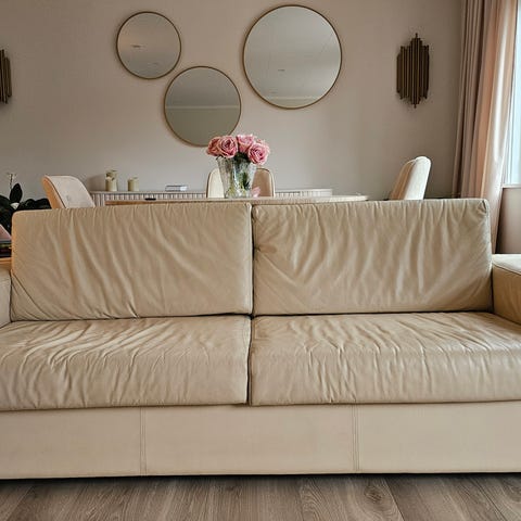 Godt brukt Ektorp hjørnesofa I beige. Følger med et ekstra trekk. Trekket som er på nå trenger en vask.