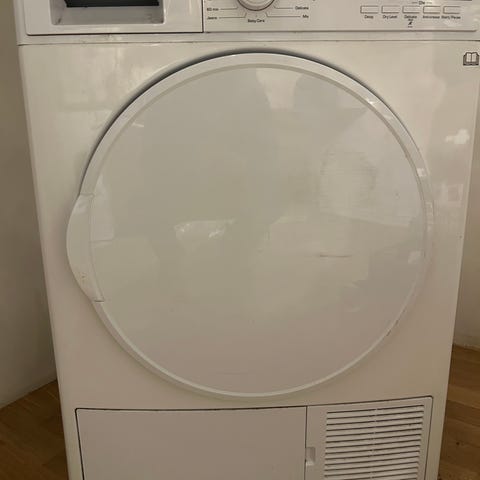 Matsui kondenstørketrommel i hvitt. Egnet for vanlig bruk i husholdning til tørking av klær og tekstiler. Enkel frontbetjening og klassisk frittstående design.