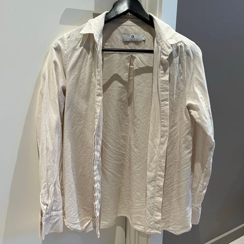 Blusen er i silke. Gammelrosa/beige farge. Lite brukt. Nyvasket, men ikke strøket som bilde viser