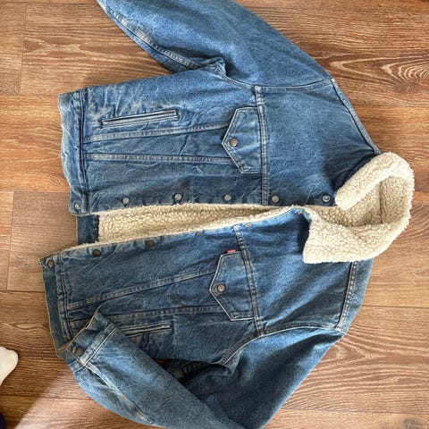 Sjelden denim jakke i kraftig kvalitet - ekte vintage jakke som er vendbar - feilfri og aldri benyttet - ingen sjefende lukt - oppbevart og ivaretatt slik at den fremstår som fra fabrikken.