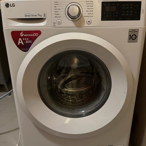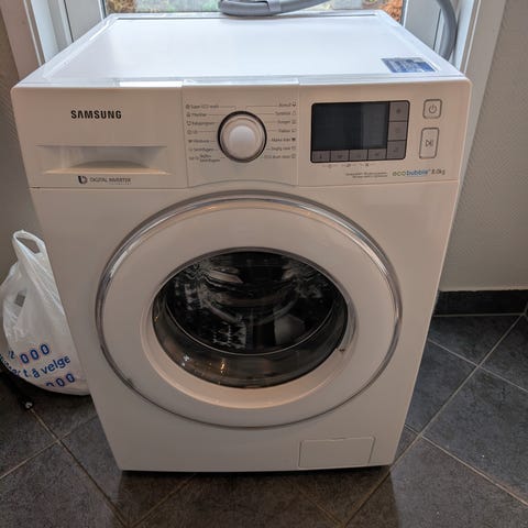 Gram frontmatet vaskemaskin. Betjeningspanel foran med dreiehjul og display for valg av programmer og innstillinger. Egnet for vanlig klesvask i husholdning. Har hatt maskinen i ca. 1 år. Selges grunnet overgang til en mer avansert modell.