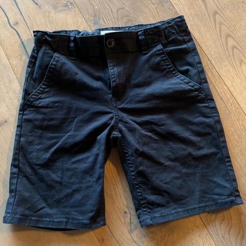 Lindex shorts for barn i størrelse 152. Farge blå. Shortsen har knapp og glidelås foran, strikk i livet bak samt lommer både foran og bak