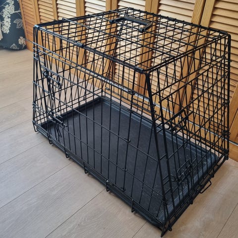 Hundebur i metall med skrå bakside og uttakbar plastbunn. Buret har gitterkonstruksjon som gir god lufting og oversikt for hunden. Egnet til bruk i hjemmet eller i bil, avhengig av mål og biltype. Passer til mindre til mellomstore hunder, avhengig av størrelse på buret. Plastbunnen er enkel å ta ut for rengjøring.