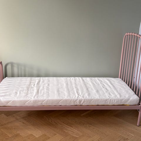 Sengen selges med lite brukt madrass (god stand), madrassbeskytter og laken×2.