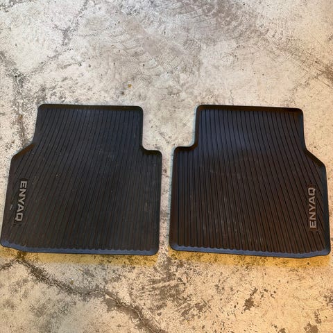 Hyundai Ioniq 5 gummimatter bil gulvmatter i svart. Settet består av formtilpassede gulvmatter i gummi til kupé, med opphøyde kanter og mønstret overflate for å samle opp smuss og fukt. Mattene har festehull foran for å kunne låses til bilens originale festepunkter. Passer til Hyundai Ioniq-modeller som er tilpasset denne typen originalmatter i gummi.