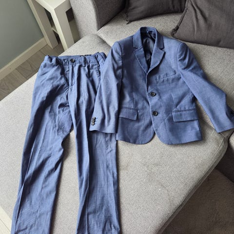 Selger pent brukt blazer og penbukse i velur/fløyel, i marineblå. Kjempestilig sett.