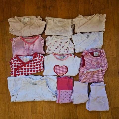 2 sett (body og bukse), 2 bodyer og 1 kjole