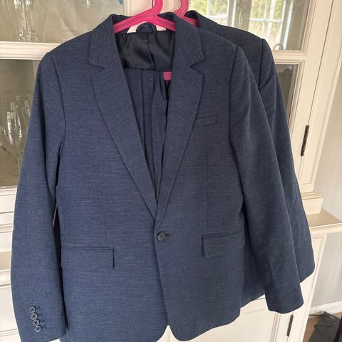 Dressbukse (158), jakke (152), 1 hvit linskjorte (146), 1 beige linskjorte (146), 1 ekstra beige linbukse (152). Alt passer gutt str 10 år. Ingen flekker eller slitasje. Brukt til 1 17.mai.