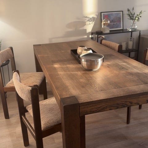 Vi selger vårt flotte spisebord i eik grunnet feil størrelse. Bordet ble kjøpt i fjor vinter her på Finn og er pent brukt. Det følger med 2 klaffer. Mål uten klaffer er 90x160. Utslått med begge klaffene i: 90x250.