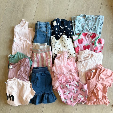 Klespakke, det meste i str. 110, noen få plagg i 116. Perfekt hvis du har en kjoleelsker!
