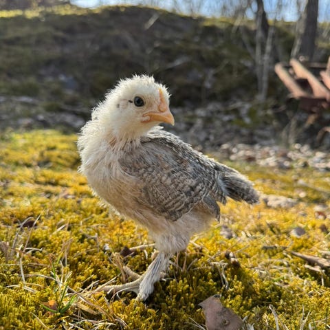 Varmelampe,kyllingmat og ett trekkfritt sted behøves.