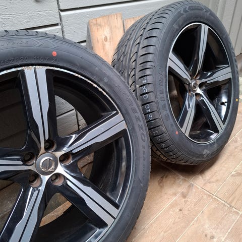 Benyttet som et tredje sett i en kort periode før overgang til Macan. Ingen skader, jevn slitasje. Mønsterdybde 6-7mm. Kjøpt nye av meg i 2025, komplett med TPMS.