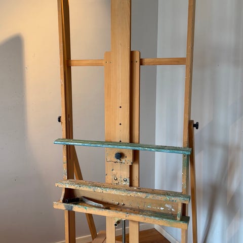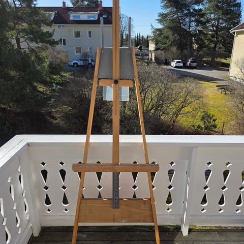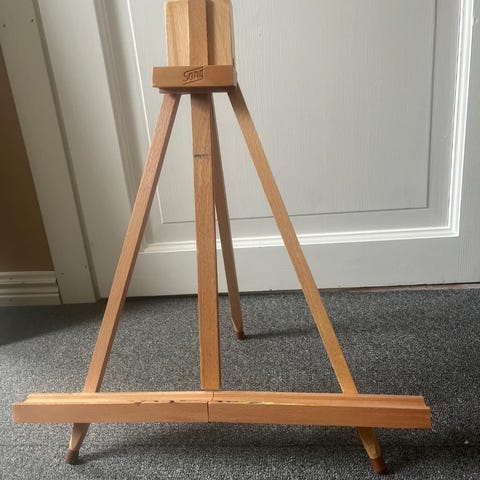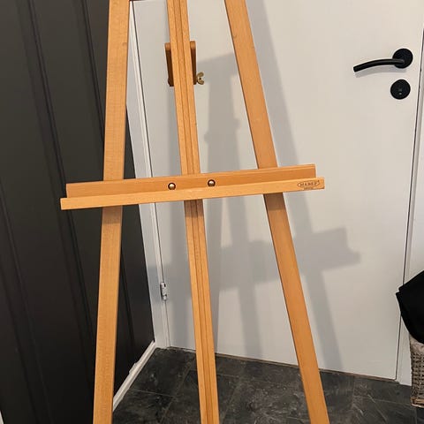 Staffeli i tre med justerbar høyde på lerretsholder. Klassisk A-formet gulvstaffeli som står fritt på gulvet. Passer til lerret og tegneplater i ulike størrelser. Egnet til maling, tegning eller utstilling av bilder.