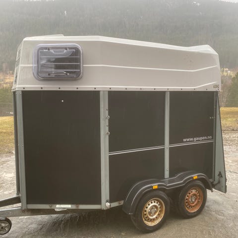 Hestetransport tilhenger i grå og hvit utførelse. Tilhengeren har to aksler og innvendig skillevegg for transport av hest. Den er utstyrt med baklem/dør, sideinngangsdør og vindu for lufting og lys. Innvendig høyde og bredde er tilpasset transport av to hester, avhengig av størrelse. Se reg.nr for mere oppl. HP2726.