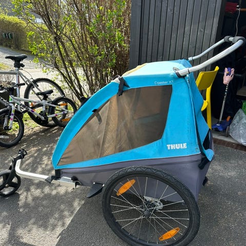 Thule Chariot Lite 1 med løpesett og Infant sling selges. Kan brukes fra nyfødt og opp til 22 kg. Som sykkelvogn fra ett år.