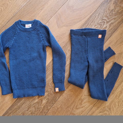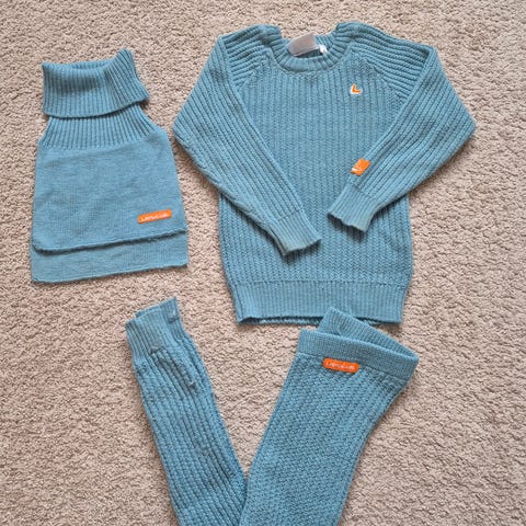 Lanullva ullsett i størrelse 6 år. Pent brukt av et barn. Men noen løse tråder på settet. Se vedlagte bilder.