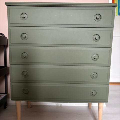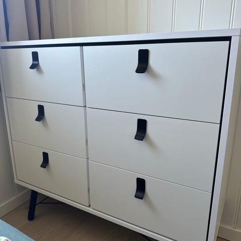1 kommode i eik og sort, kjøpt på Fagmøbler i 2021, selges for 900 kr.