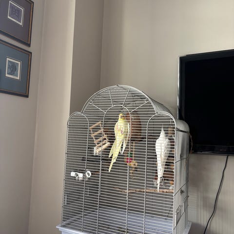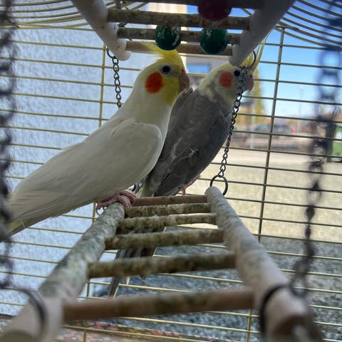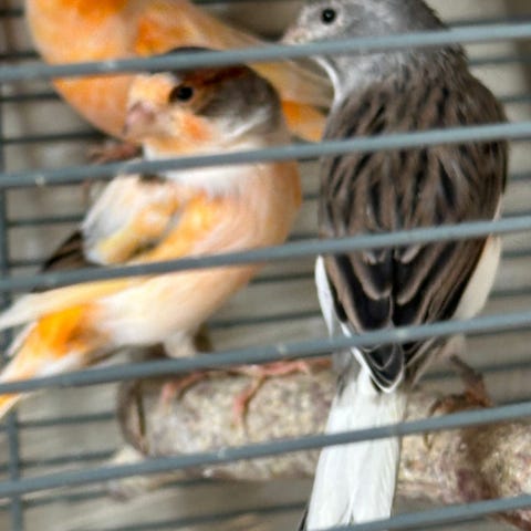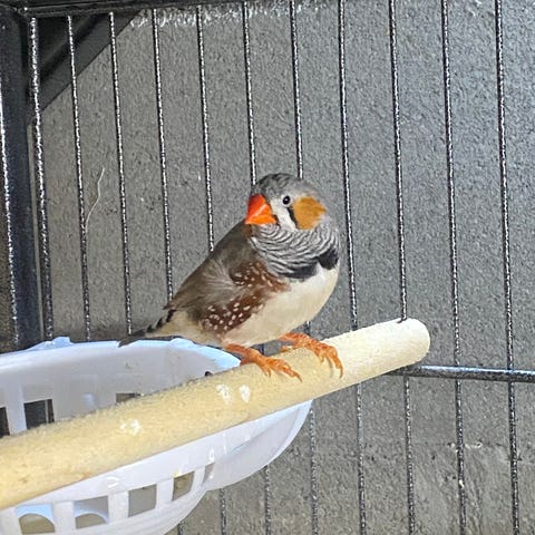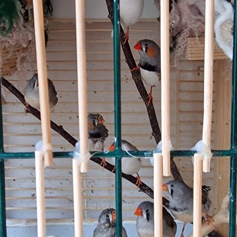 Dei er ein par. Dei kan legge egg. Begge kostar 500kroner med bor kostar det 1000kr. Dette er en fugl som heter Zebra Finch (på norsk: sebrafink).