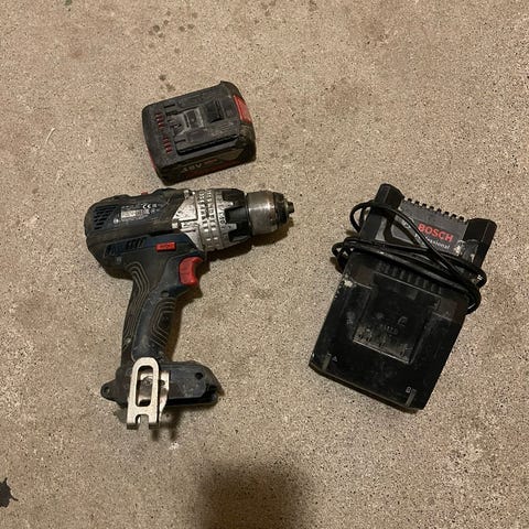 Bosch Drill 18V batteridrill med 2 batterier og lader