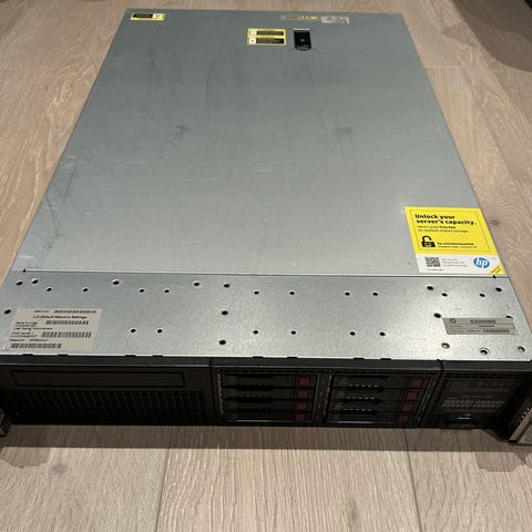 Dell PowerEdge R730 2U rack server med 16SFFx 2.5", installert 2x Intel® Xeon® Processor E5-2690 v3 30M Cache( 12 kjerner/24 tråder og 2.60 GHz boost 3.50 GHz) prosessor, 32 GB DDR4 2133 ECC minne (2x 16GB DDR4) Uten HDD disker og caddies. 2x750W Platinum Strømforsyning.