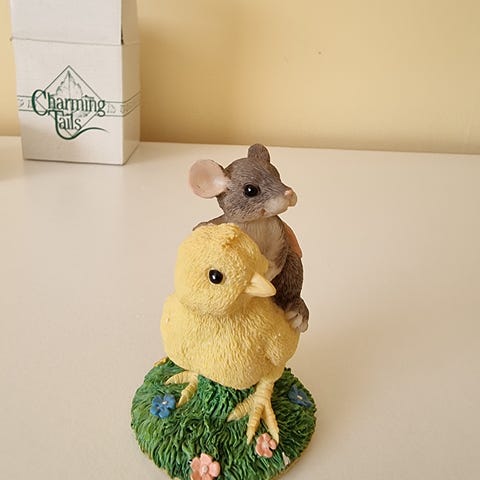 Tre figurer fra Charming Tails by Fitz and Floyd-kolleksjonen til salgs. Med esker, nye. Pris for alle tre: 590 kr.