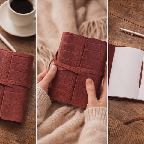 Agenda i brunt skinn. Agendaen har ringperm med metallmekanisme og trykknapplukking. Innvendig finnes flere kortlommer og en større lomme på siden, samt plass til notatark eller kalenderinnlegg i ringpermen. Egnet til organisering av notater, avtaler og kort. Notatark følger med. Selges billig!