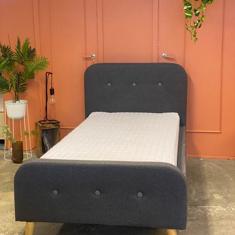 Enkelte bruksmerker fra transport, men madrassen er nylig renset og har fast fasthetsgrad.
