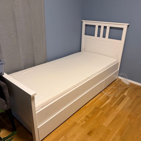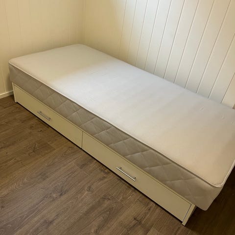 Ikea "Brimnes" 90 x 200 cm med madrass og oppbevaring!
