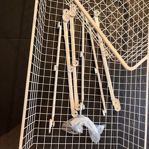Skinner og skruer følger med. Brukt i skap hvor bredde er 75 cm og dybde 58 cm.