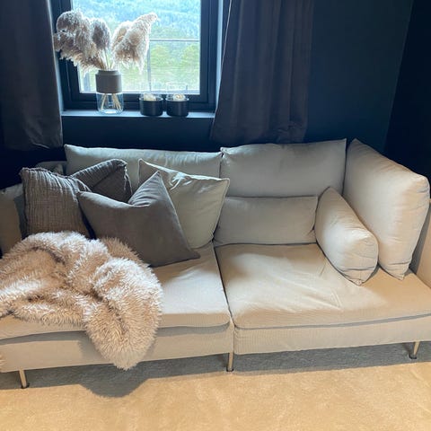 Sofaen ble kjøpt for 5 år siden og er pent brukt. Den er fortsatt i god stand, uten større skader eller slitasje. Sofaen selges med 2 små puter (ikke komplett sett).