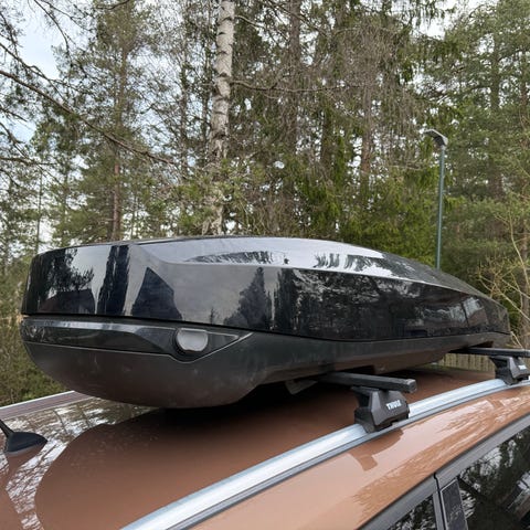 Packline skiboks med takstativ. Gull farge.