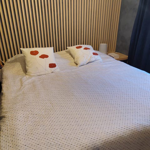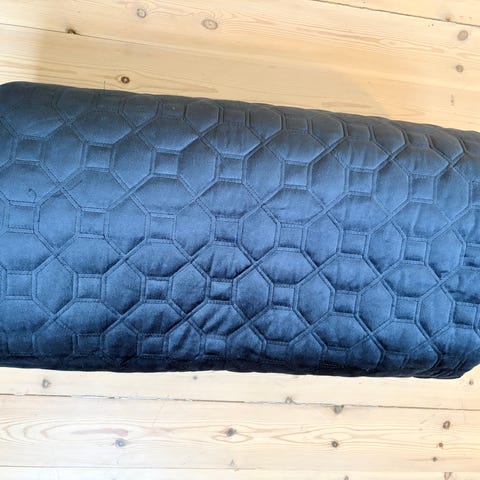 Lite brukt Zara Home sengeteppe i quiltet design. Teppe med tosidig farge, én side i lys beigegrå og én side i svart. Passer som sengeteppe over standard dobbeltseng. Egnet til bruk på soverom som dekorativt og praktisk overkast over dyne og puter. Den er ca 250x180 cm. Senga på bildet er 150