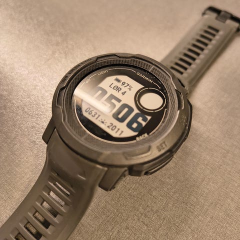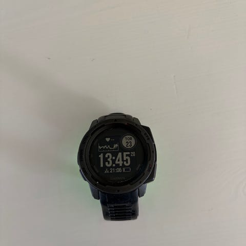 Garmin Instinct E smartwatch med robust urkasse i svart. Klokken har rund skjerm og tydelig digitalt display med visning av tid, dato, batteristatus og aktivitetsdata. Modellen har flere knapper rundt rammen for navigasjon i menyer og funksjoner. Størrelsen er 45 mm, egnet for bruk på håndledd til både menn og kvinner. Egner seg til daglig bruk og aktivitetsregistrering med GPS og ulike trenings- og helsefunksjoner, avhengig av støttede funksjoner i denne modellen. Klokken er kjøpt i november, lite brukt!