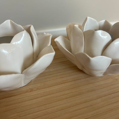 Blomstene fungerer utmerket som telysholdere, men er like fine som ren dekorasjon på et dekket bord, i en hylle eller på badet. De gir et lunt og stemningsfullt uttrykk.