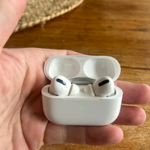 Apple AirPods Pro trådløse ørepropper i hvit farge. Lightning lader. Funker fint