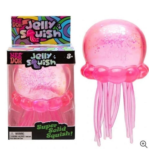Robetoy klemmeleke i myk plast med glitter. Leken er formet som et lite dyr og er fylt med glitterpartikler som beveger seg når man klemmer på den. Farge: rosa med flerfargede glitterdetaljer. Leveres i original plastemballasje.