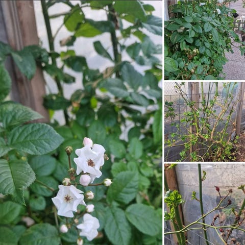 4 etablerte rosebusker selges 200kr per stk. Må ikke kjøpe alle samlet, kan kjøpe enkeltvis. Plantene er beskjært ned og står i jord, klare for videre vekstsesong. Egner seg til beplantning i hagebed eller som del av prydbed.
