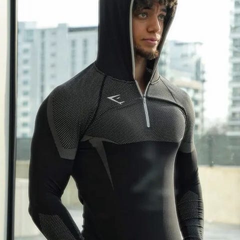 Gymshark treningsgenser med hette for herre i størrelse XL.