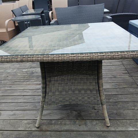 Bord 150x83xH72,5cm, i kurv understell med bordplate i farge gråbrun.