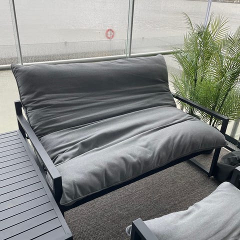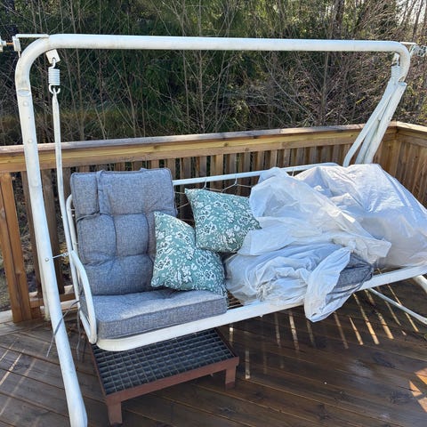 Hammock med 3-seter grå putetrekk.