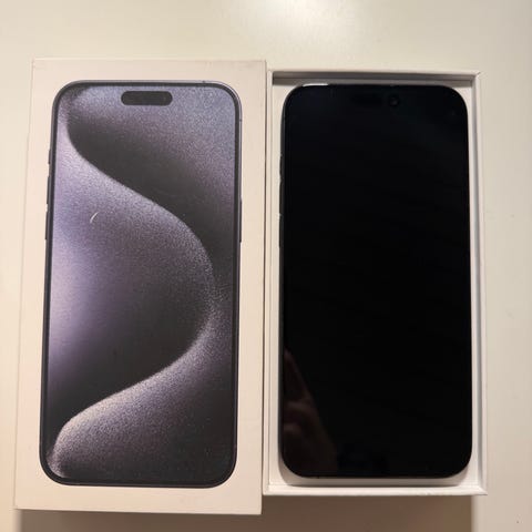 Selger en Apple iPhone 15 Pro med 128 GB lagringsplass. Telefonen er pent brukt og fremstår i veldig god stand.