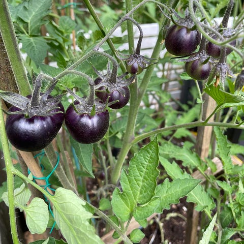 'Tiny Tim' trenger ikke å tyves. Noen grener kan trenge støtte hvis de tynges ned av mye tomater.