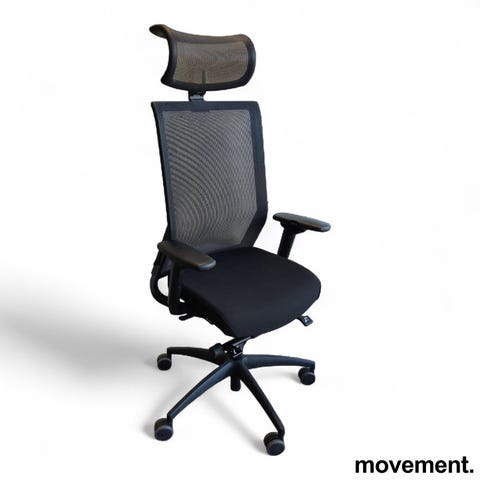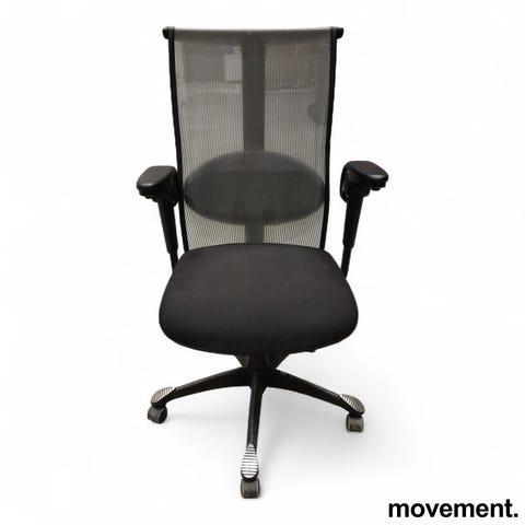 Produktbeskrivelse Den ergonomiske kontorstolen fra Wagner kombinerer funksjonalitet og stil med et moderne design. Den har et komfortabelt mesh-sete og rygg som sikrer god ventilasjon, perfekt for lange arbeidsdager. Ergonomiske funksjoner Ryggstøtte: Høy rygg i mesh som gir støtte og lindrer trykk i korsryggen Armlener: Justerbare armlener for optimal støtte Sete: Polstret sete i mykt stoff for ekstra komfort Justeringsmuligheter: Høydejusterbart sete for tilpasning til ulike bordhøyder Spesifikasjoner Merke/Modell: Wagner Materiale: Mesh på rygg og sete, plast og metallramme Farge: Svart med subtil belyst finish Mål: Bredde 70 cm, dybde 70 cm, høyde 110 cm, sittehøyde 52-64 cm Tilstand Stolen er i god tilstand med minimale bruksmerker. Mesh-materialet er i utmerket stand uten rifter, og alle justeringsfunksjoner fungerer feilfritt.