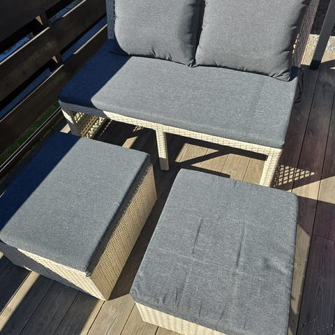 Pent brukt loungesett fra Rusta selges. Består av to stoler, en 2-seters hagesofa og et bord. Noen få bruksmerker, men i god stand. Selges samlet. Må hentes på Fagerborg. Kan avtale senere henting (senest juni) om ønskelig.