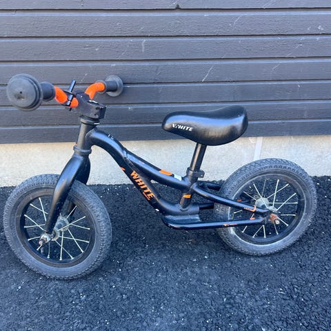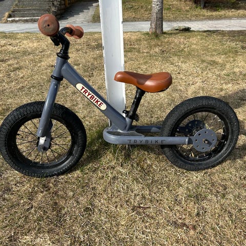 En perfekt første sykkel til å lære seg å balansere med. Setet kan justeres i høyden.