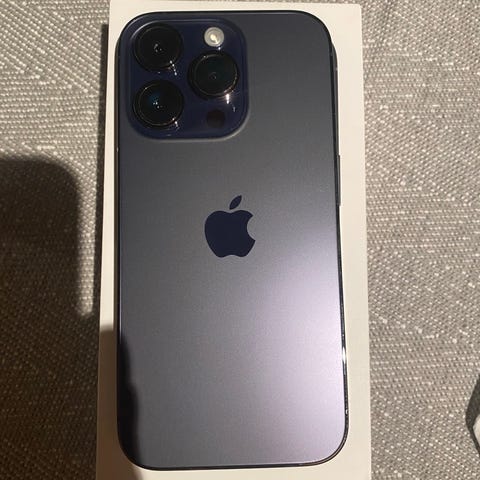 Apple iPhone 14 Pro smarttelefon med 128 GB lagringsplass og fargen deep purple selges. Telefonen fremstår svært bra uten synlige bruksmerker. Telefonen har vært brukt med skjermbeskytter og deksel hele tiden.